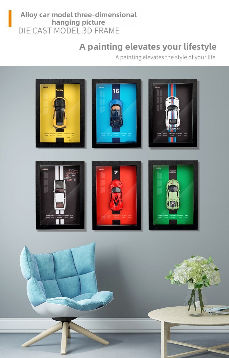 3D Wall Art: Combines collectible car model with decorative hanging painting for unique home or office display.