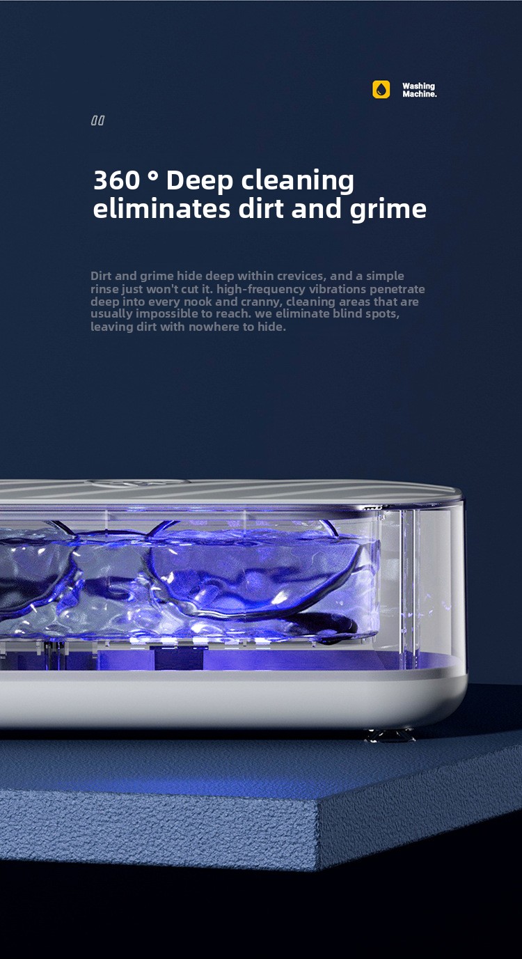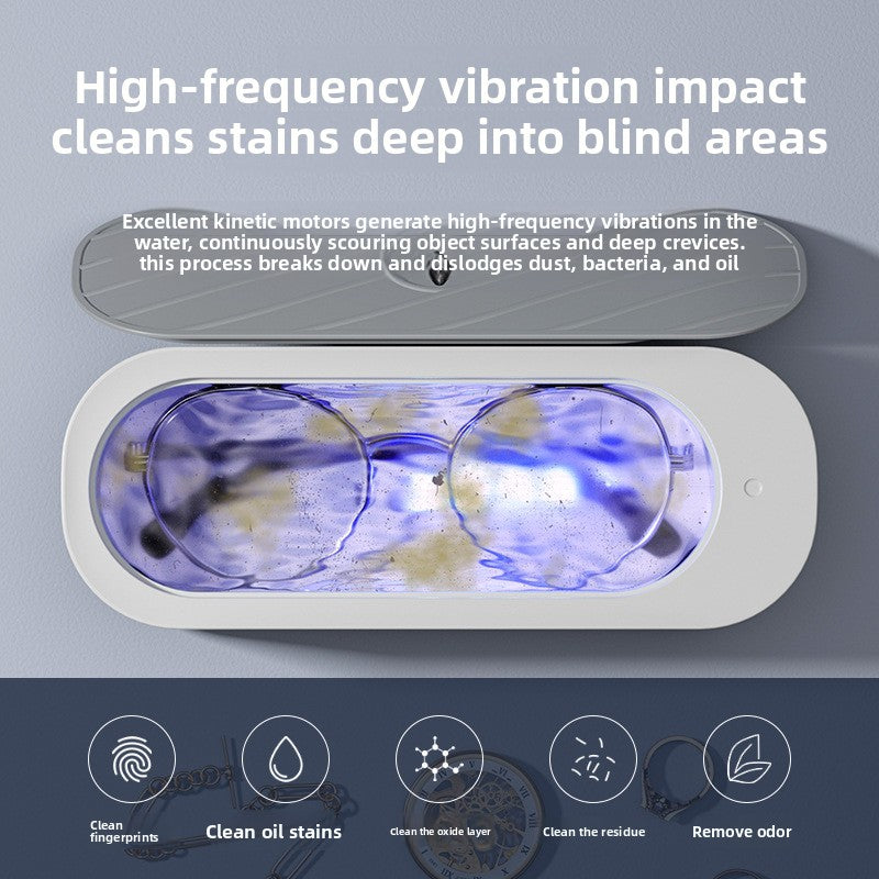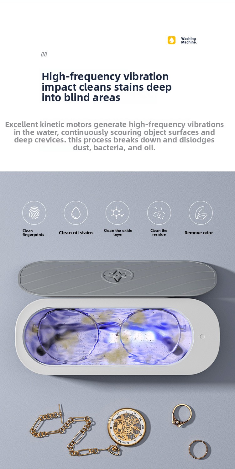 Vibration Cleaning: Utilizes vibration technology for effective removal of oil stains and dirt from glasses, braces, and jewelry.