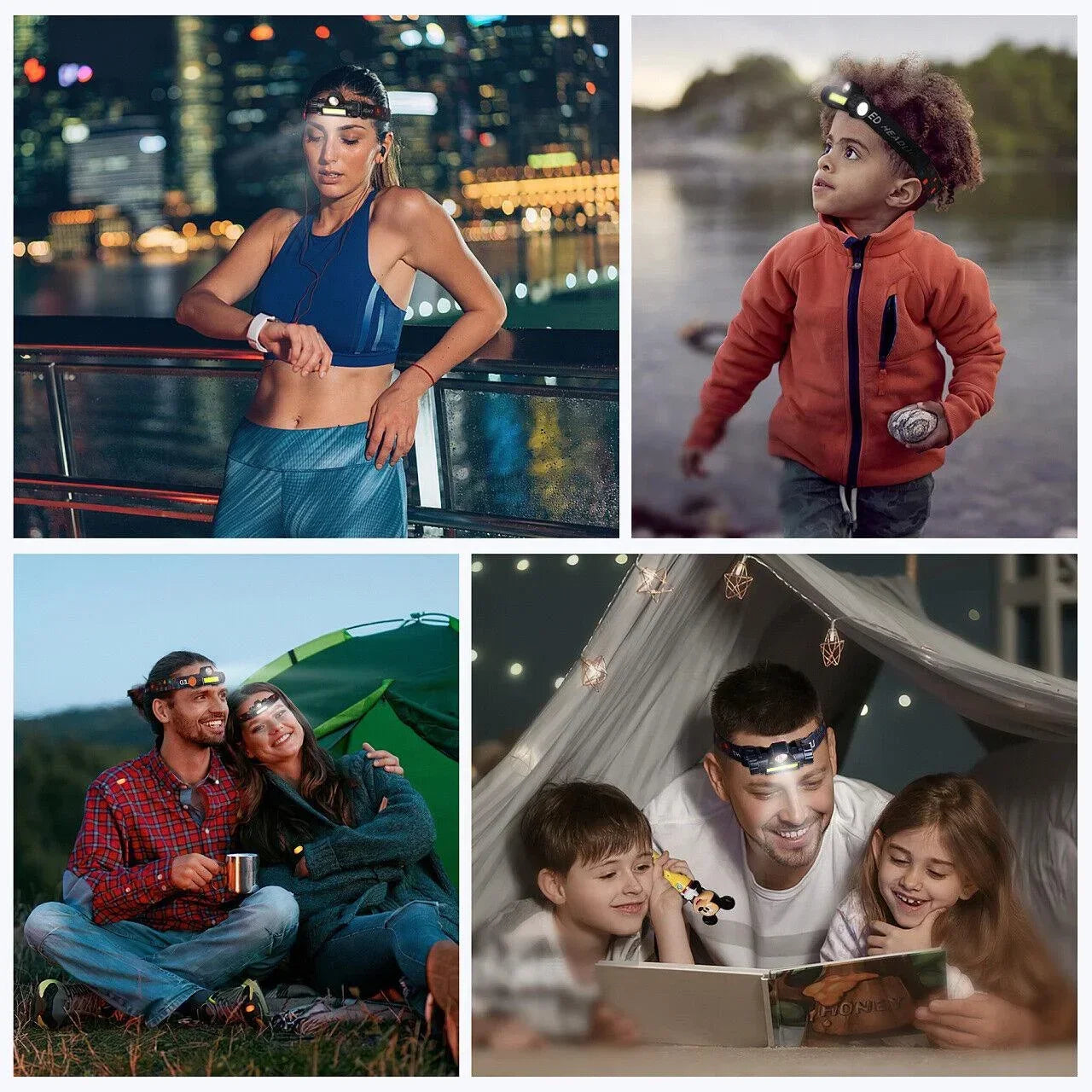 【 ANGLE ET SANGLE FLEXIBLES】 - La lampe frontale peut être réglée vers le bas de 90° et bien fixé pour éviter les secousses et le glissement lors de la course.La lampe de poche à tête LED utilise un bandeau élastique confortable, qui peut facilement ajuster la longueur pour s'adapter parfaitement à la taille de votre tête.C'est une lampe frontale parfaite pour les adultes et les enfants.