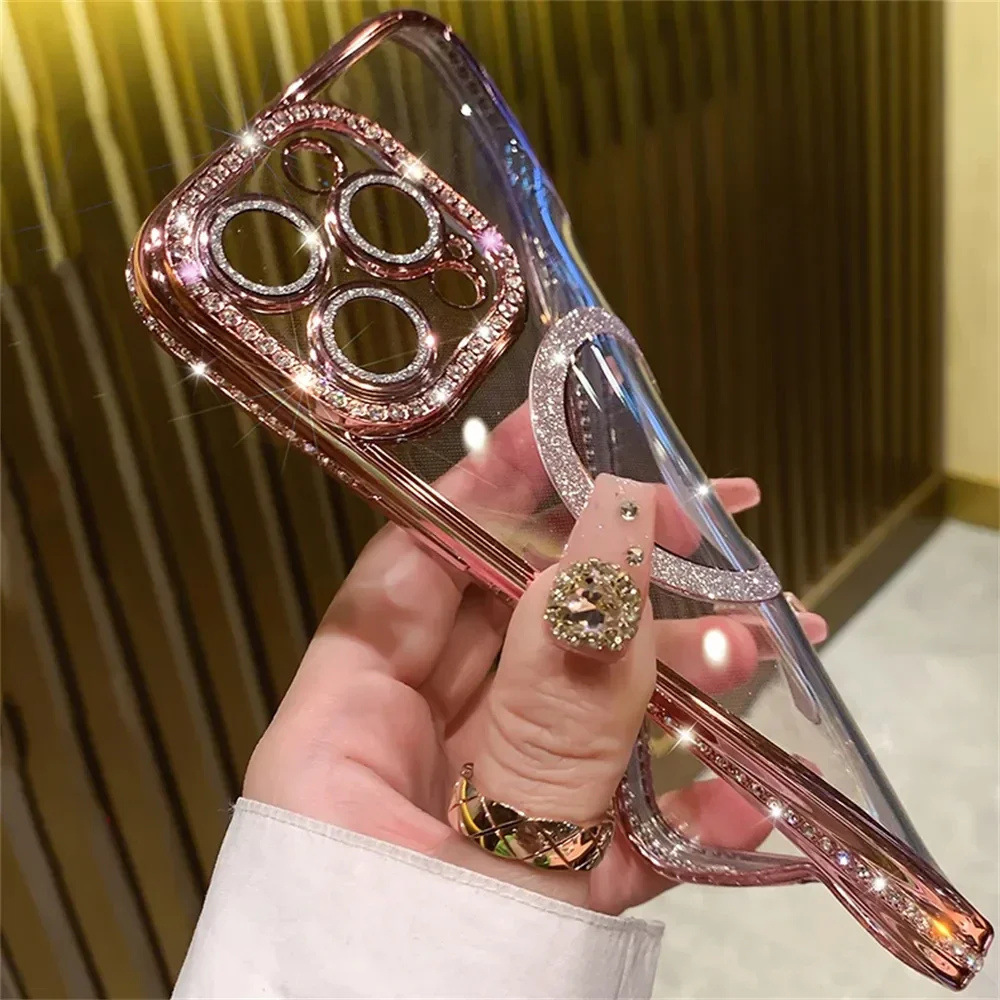 Glitter Aesthetics: Gold glitter and diamond embellishments create a stylish, eye-catching appearance.