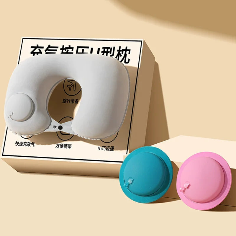 Oreiller de Protection du cou de voyage en forme de U, oreiller orthopédique Cervical gonflable, oreiller pliable Portable d'extérieur, essentiels de voyage