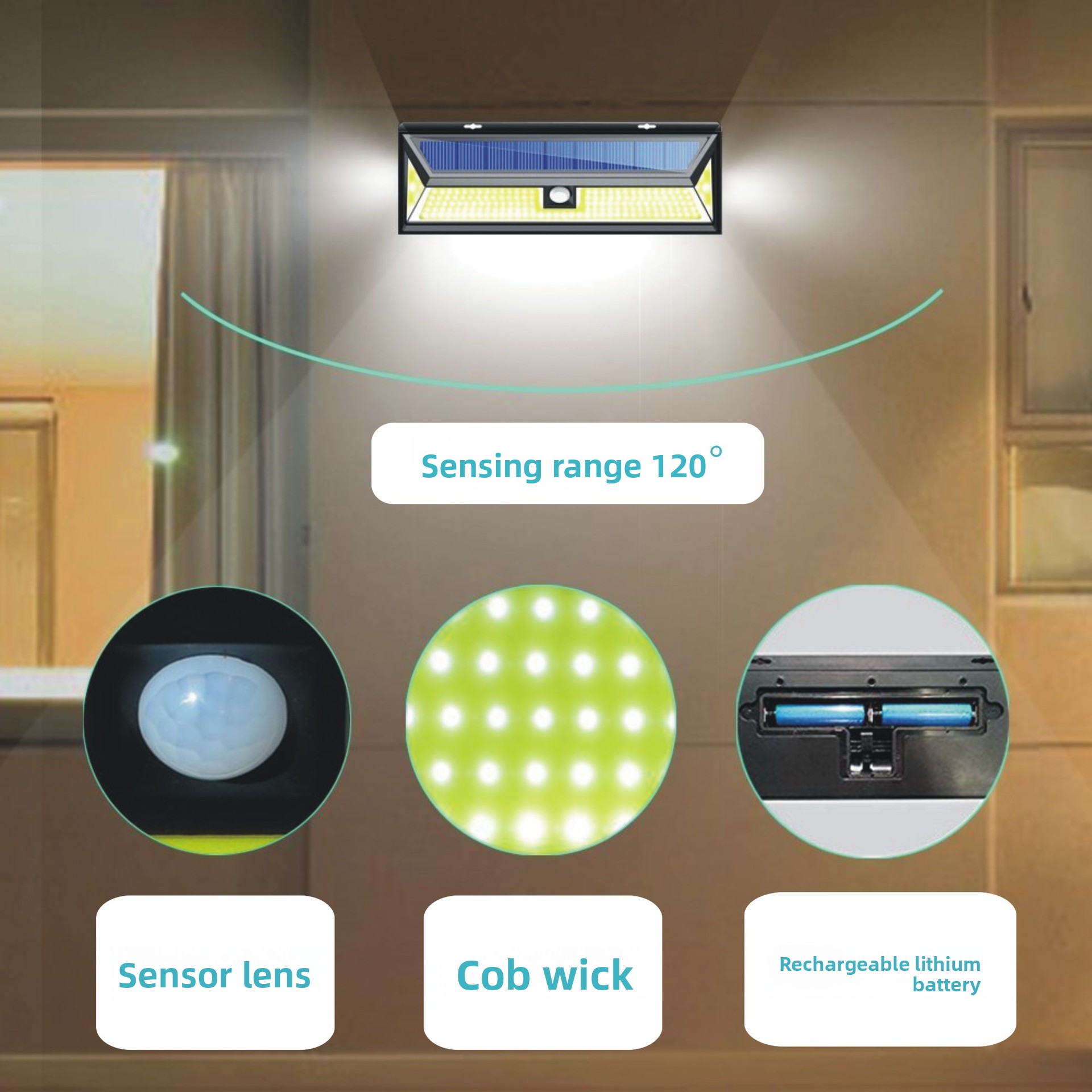 Motion Sensor: Automatically activates upon detecting movement for security and convenience