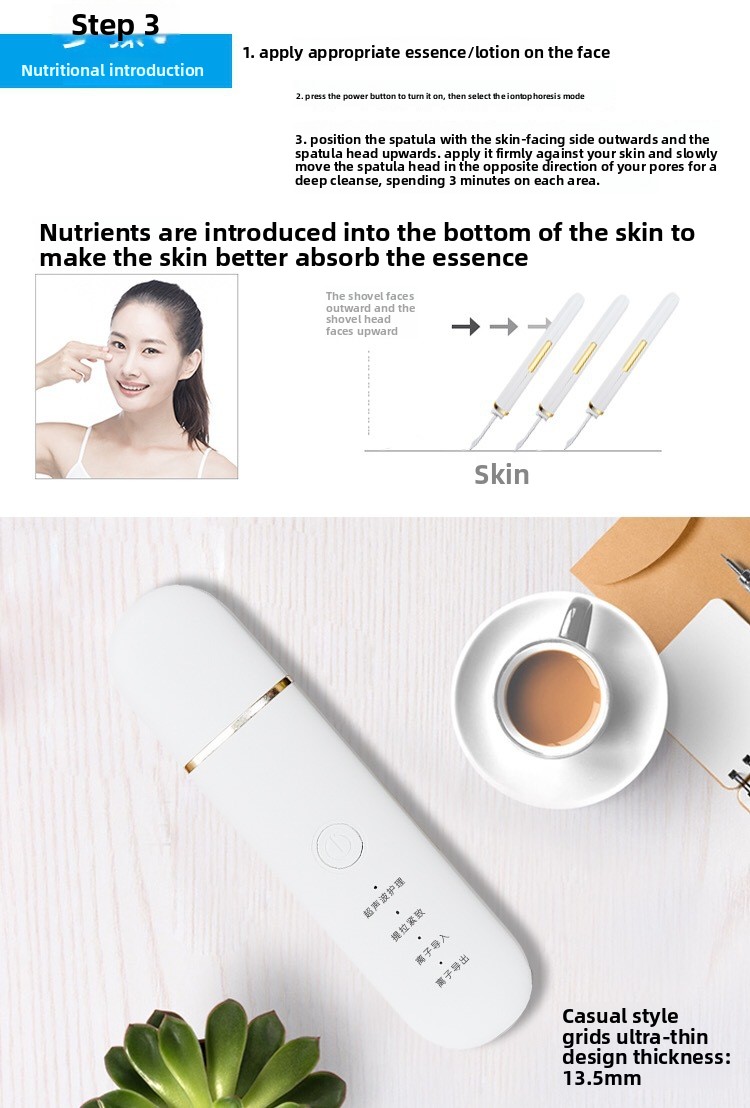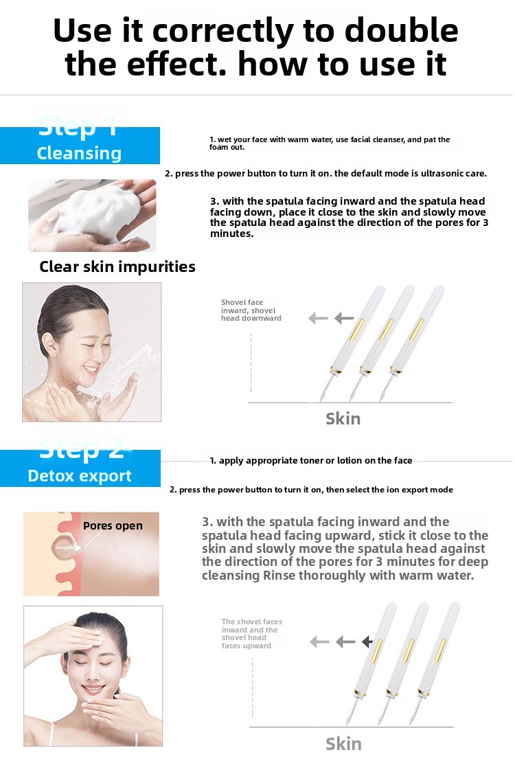 Ultrasonic Technology: Utilizes ultrasonic vibrations for deep pore cleansing and blackhead removal.