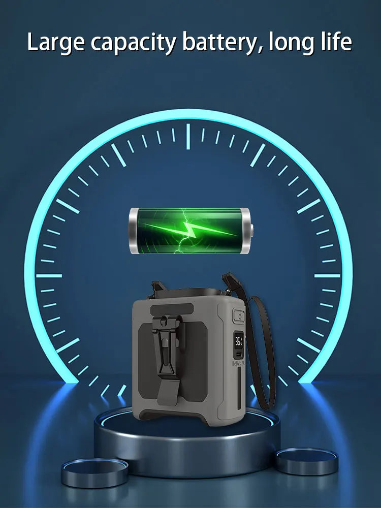 Banque d'alimentation de grande capacité de 10 000 mah : ce ventilateur de chemise de taille est construit avec une batterie rechargeable de grande capacité de 10 000 mah, le ventilateur de taille portable prend en charge jusqu'à 24 heures de temps de travail tout en soufflant un vent doux à basse vitesse.Le ventilateur peut être utilisé comme banque d'alimentation de secours.