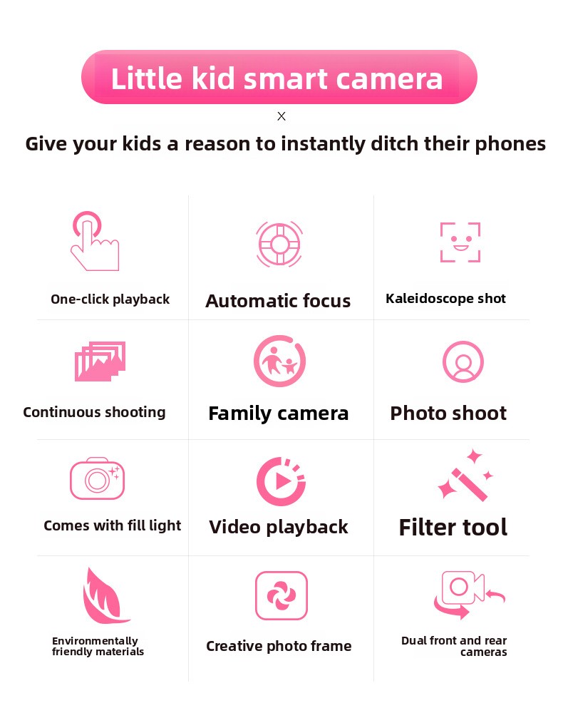 Multifunctional - Includes photo, video, filter, timer, and continuous shooting modes