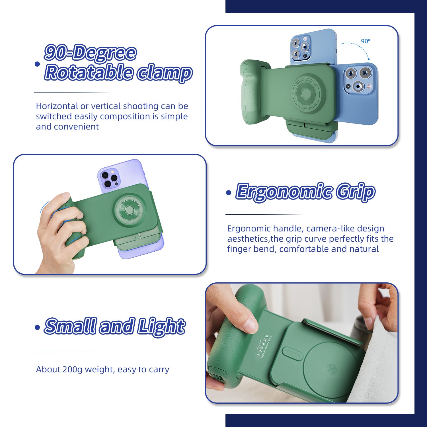Poignée ergonomique – Conception inspirée des appareils photo, avec une prise en main confortable pour une utilisation prolongée