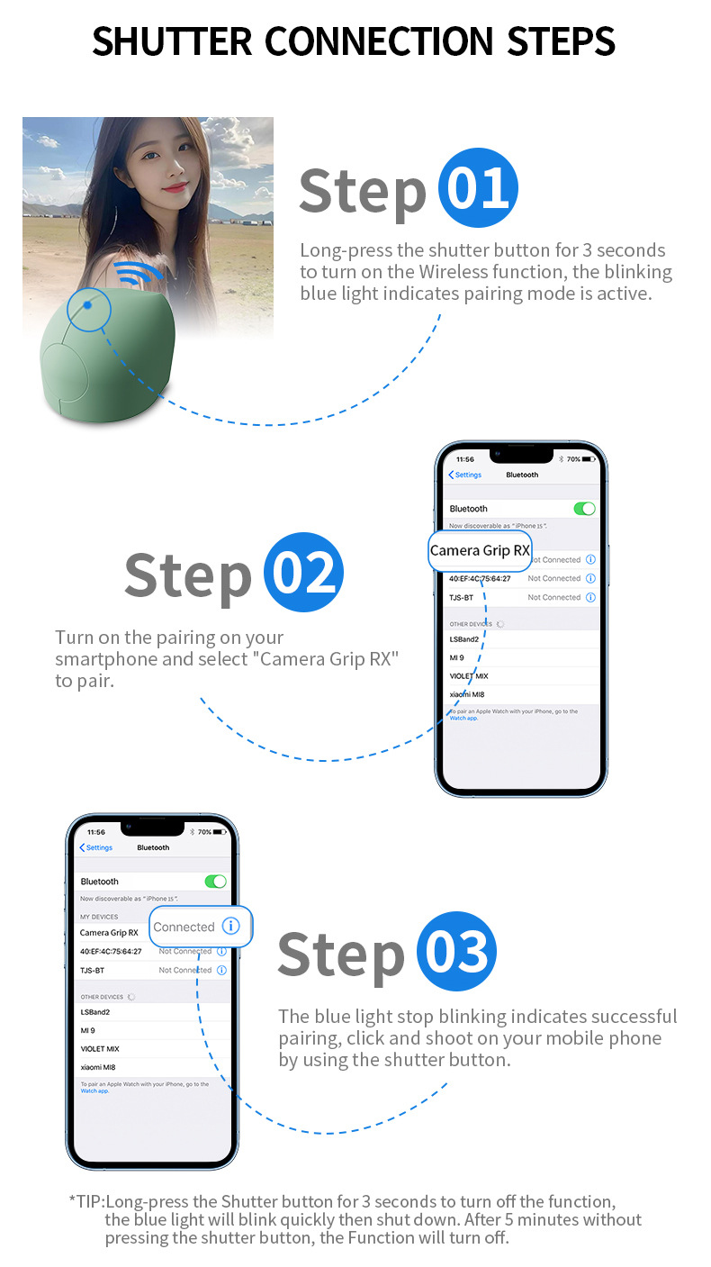 Télécommande Bluetooth – Télécommande magnétique détachable pour la capture de photos sans fil jusqu’à 25 mètres
