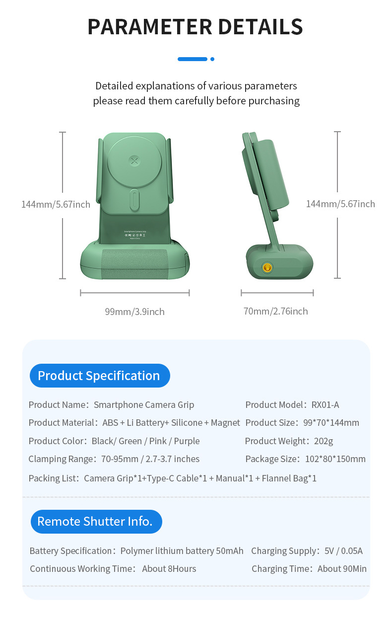 Matériaux : ABS, silicone, batterie au lithium, aimants